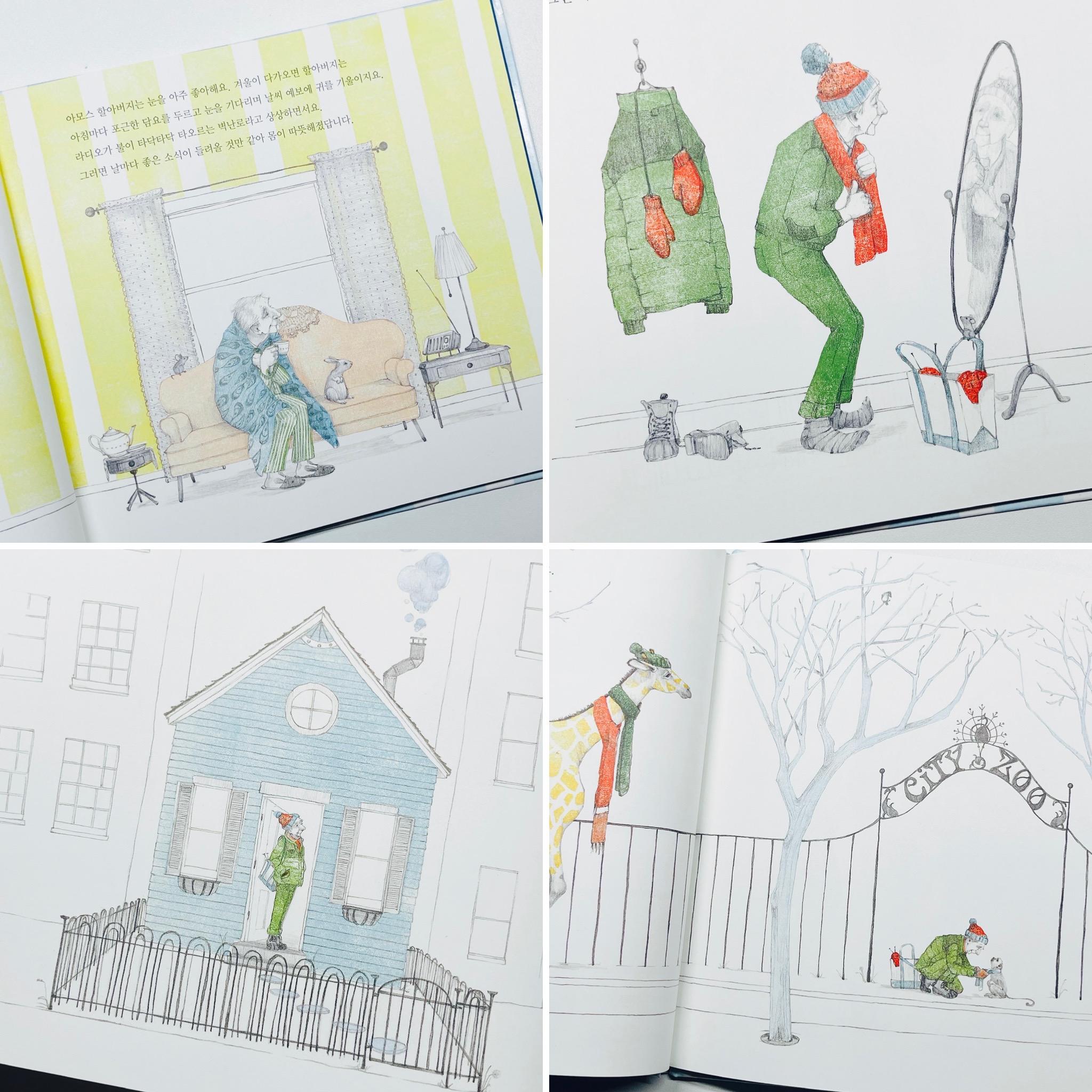 아모스 할아버지의 눈 오는 날 은 겨울 그림책으로서의 매력도 아주 분명해요.