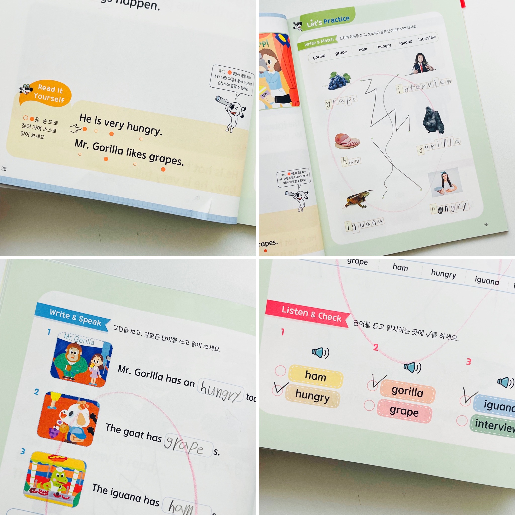 이미 배운 파닉스를 문장 속에서 자연스럽게 적용해 보도록 돕는 구성이라는 점이 인상 깊었거든요.