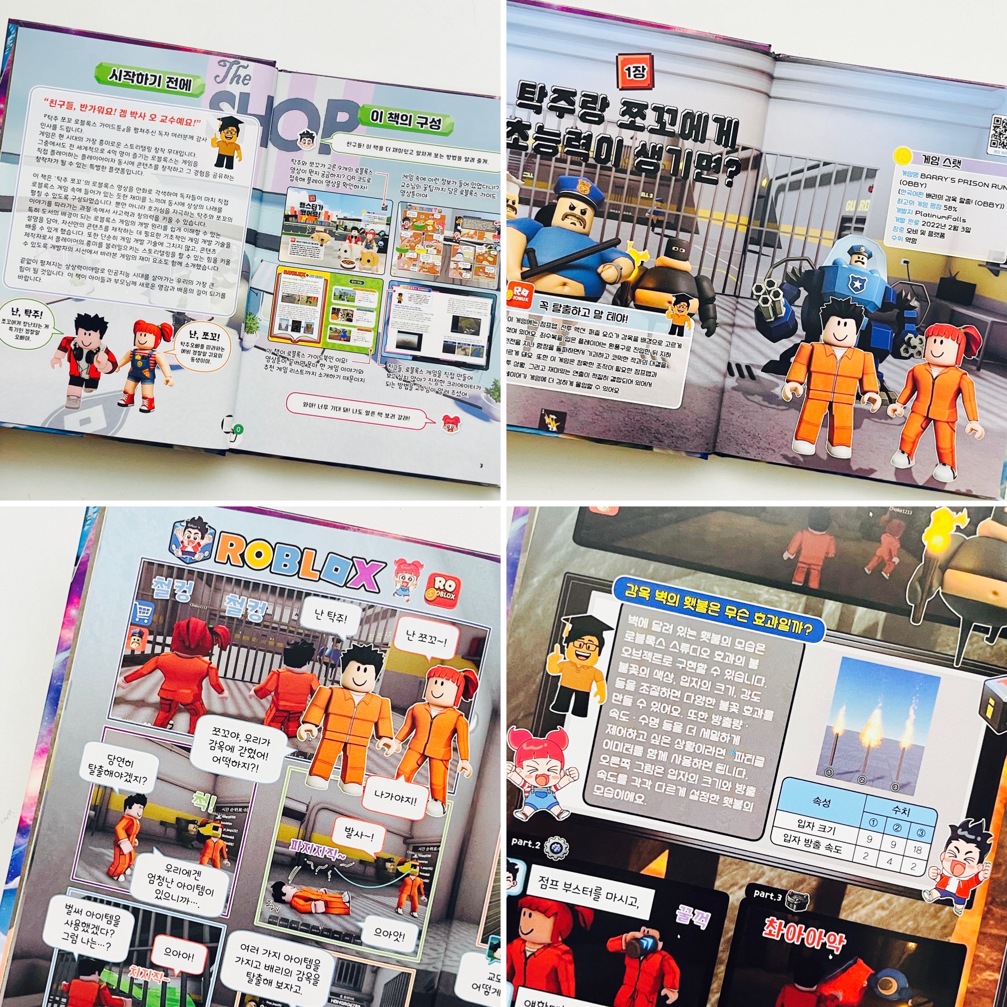이 책의 중심은 탁주 쪼꼬가 직접 선정한 아홉 가지 로블록스 게임이에요.