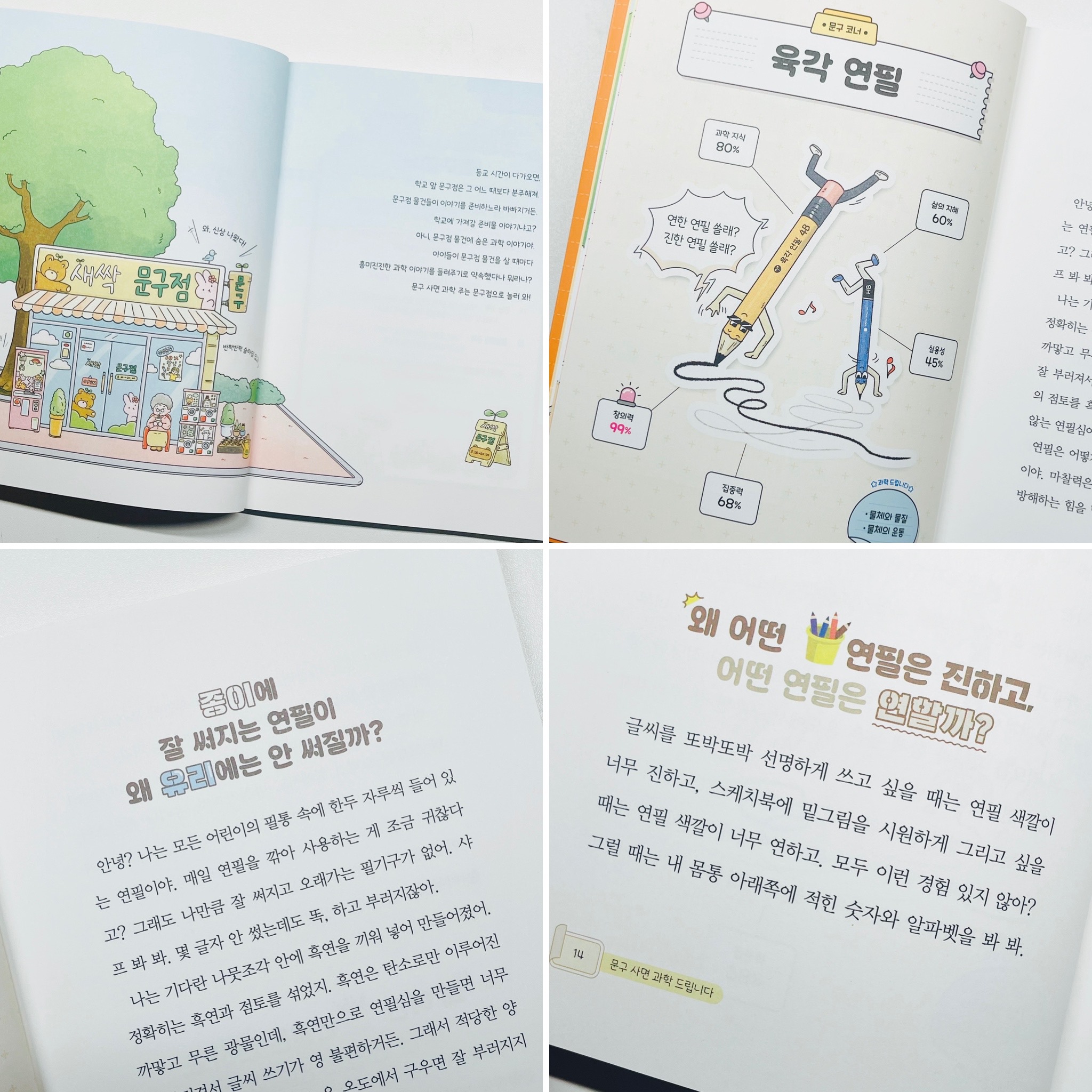 이 책은 학교 앞 문구점에서 쉽게 만나는 물건 26가지를 중심으로 52개의 과학 이야기를 풀어냅니다. 연필, 지우개, 공책, 볼펜 같은 학용품부터 슬라임, 미니카, 바람개비 같은 장난감까지 폭넓게 다루면서 운동과 에너지, 물질, 생명, 지구와 우주 등 초등 과학 교과 핵심 영역을 자연스럽게 연결해요. 교과서를 떠올리게 하는 딱딱한 설명 대신 “왜 그럴까?”라는 질문으로 시작하기 때문에 아이가 부담 없이 읽을 수 있습니다.