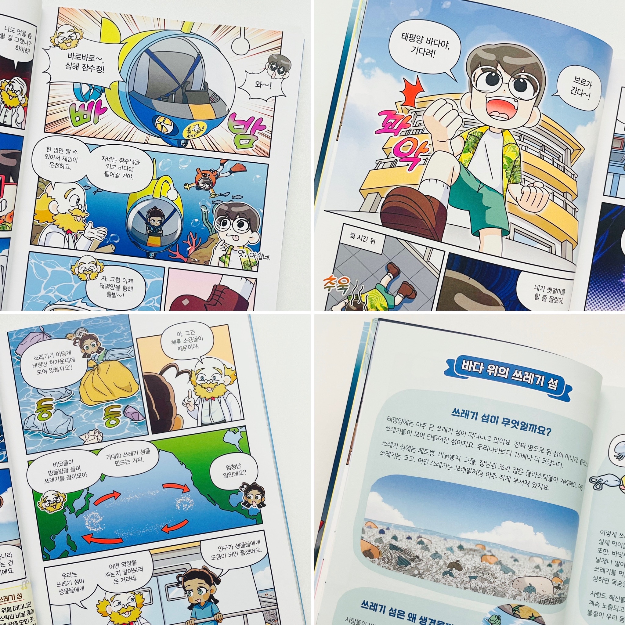 덤보문어가 등장하는 장면에서 아이는 페이지를 여러 번 넘기며 사진을 다시 보더라고요. 만화 속 캐릭터와 실제 사진이 함께 실려 있어 비교해보는 재미가 있습니다.