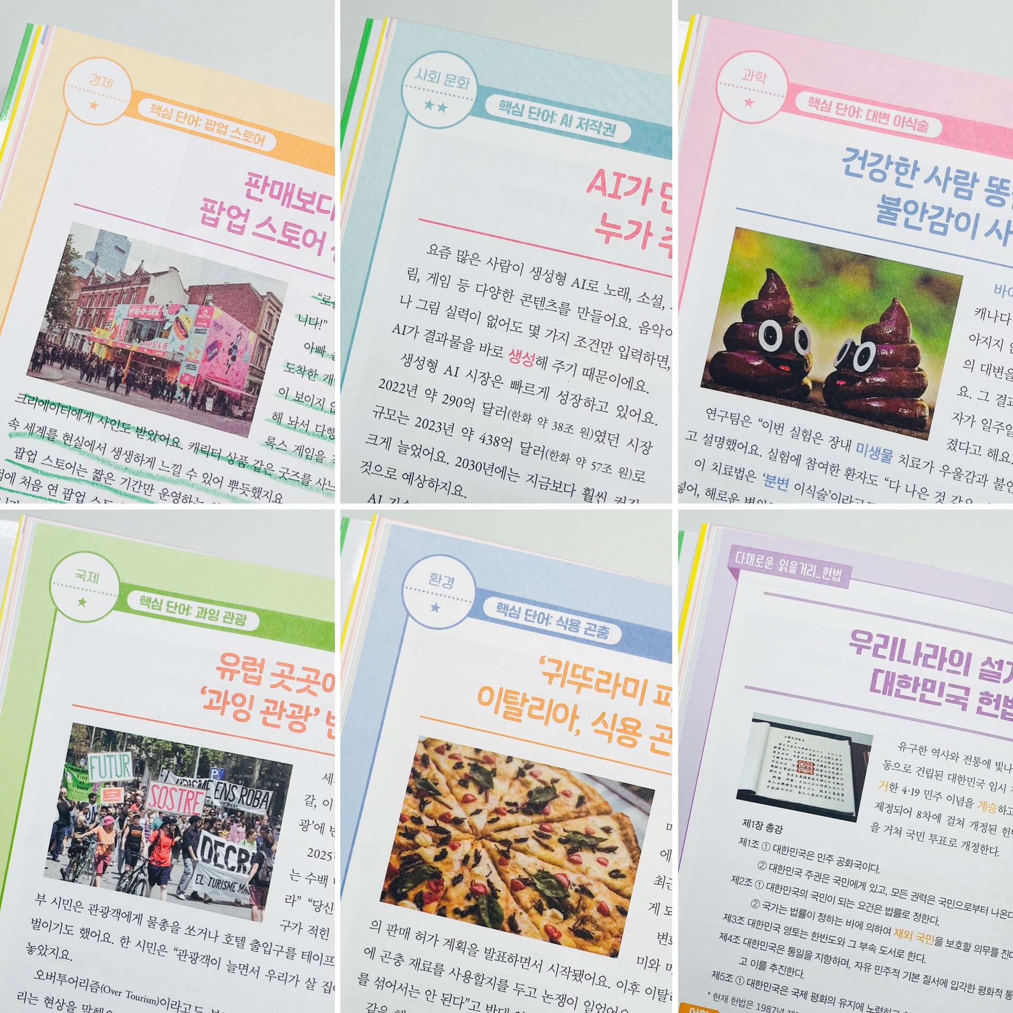 특히 좋았던 점은 교과 단원 연계입니다. 사회 시간에 배운 내용과 연결되는 기사를 읽은 날, 아이가 “이거 학교에서 배웠어!”라며 반가워했어요. 교과 개념이 현실 이슈와 이어지는 경험은 이해도를 확실히 높여 주는 것 같았습니다. 초등 독해력 향상이 단순 문제 풀이를 넘어, 교과 학습 기반을 다지는 데 연결된다는 느낌을 받았어요.