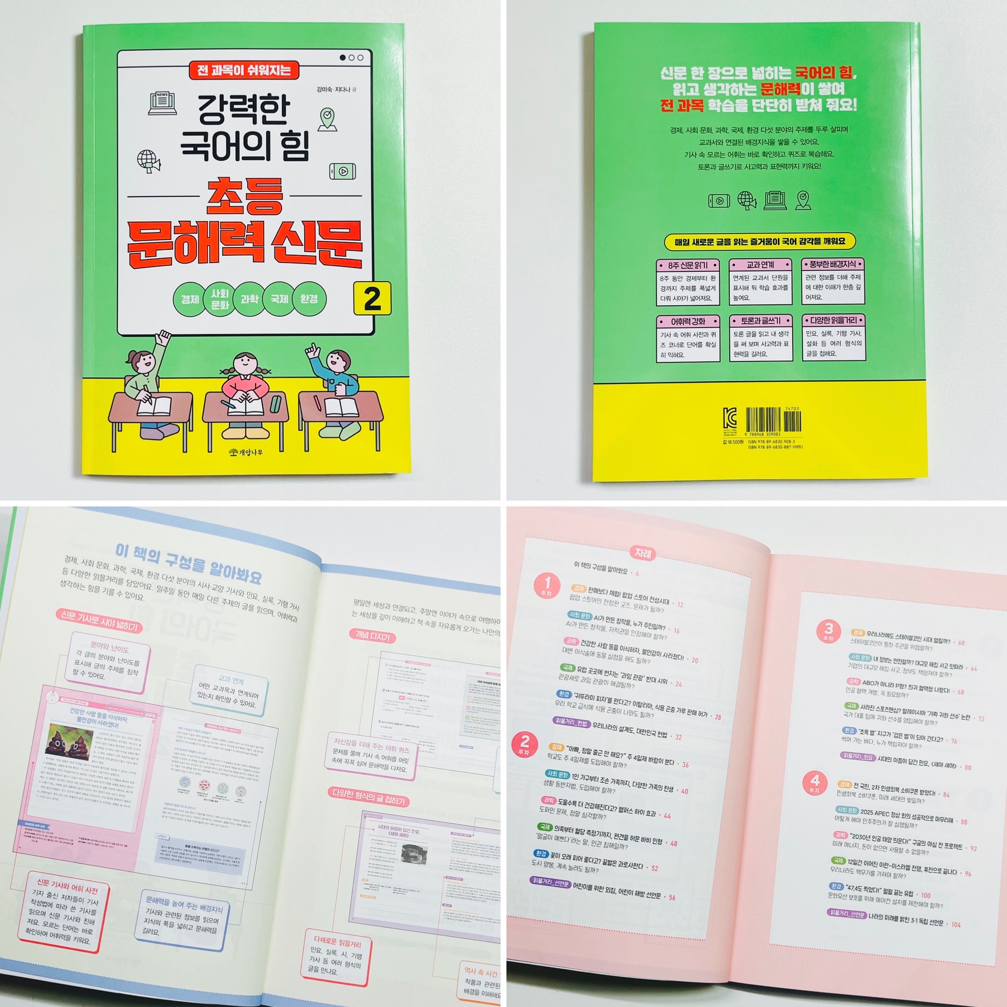 이 책은 ‘신문 한 장’이라는 형식을 통해 경제, 사회 문화, 과학, 국제, 환경 등 다양한 분야의 최신 이슈를 어린이 눈높이에 맞게 풀어냅니다. 단순히 기사만 제시하는 것이 아니라, 기자 출신 저자들이 배경지식을 덧붙여 주어 맥락을 이해하도록 돕는 구조입니다. 초등 문해력 교재 중에서도 시사 기반 읽기 + 사고 확장 활동이 함께 설계되어 있다는 점이 특징이었습니다.