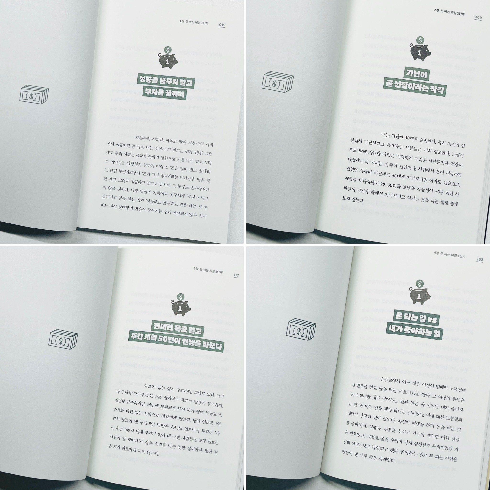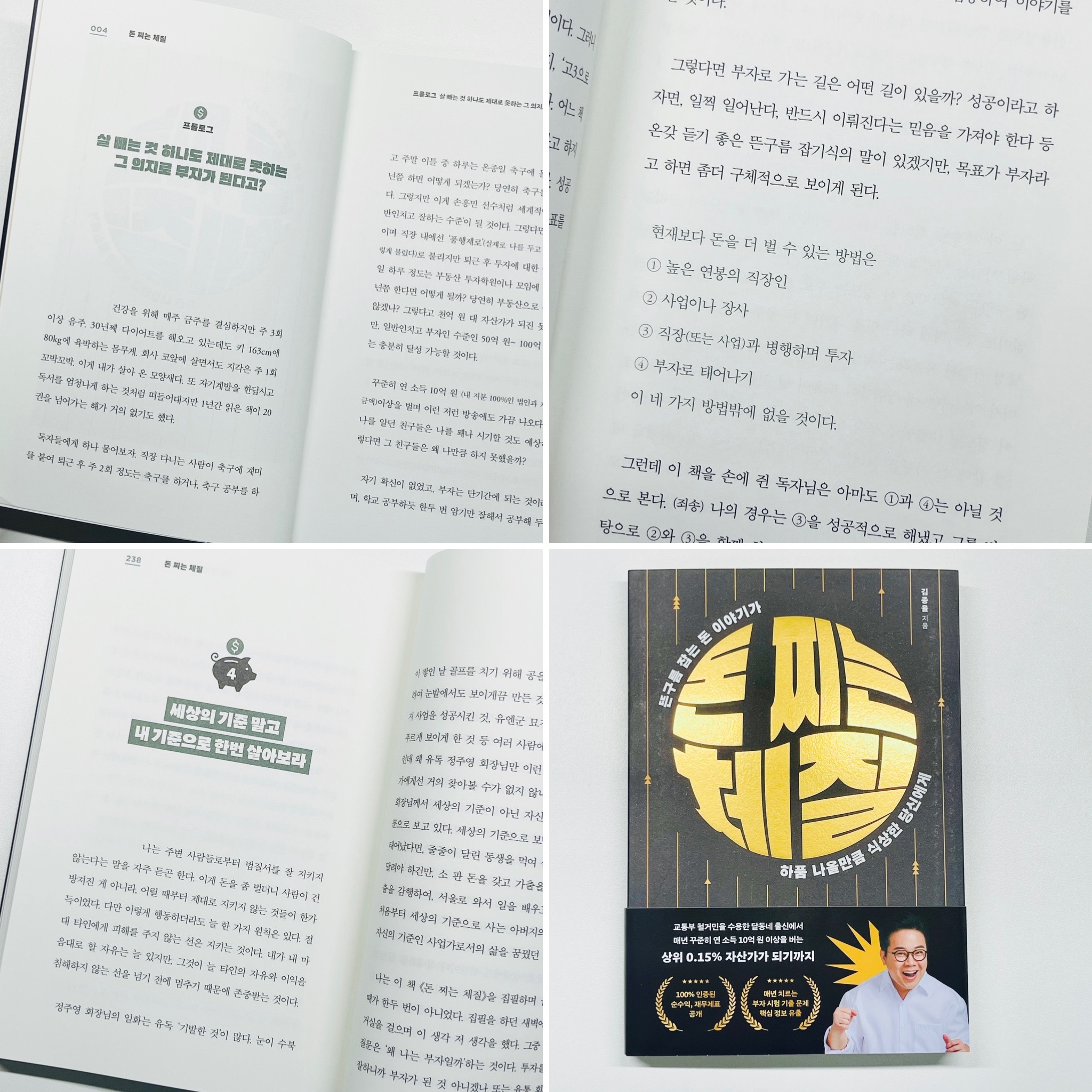 많은 자기계발 책들이 ‘열심히 하라’는 메시지에 머무르는 경우가 많은데, 돈찌는체질은 그보다 한 단계 더 나아가요. 어떻게 해야 돈이 자연스럽게 모이는 구조를 만들 수 있는지를 계속해서 이야기하거든요.