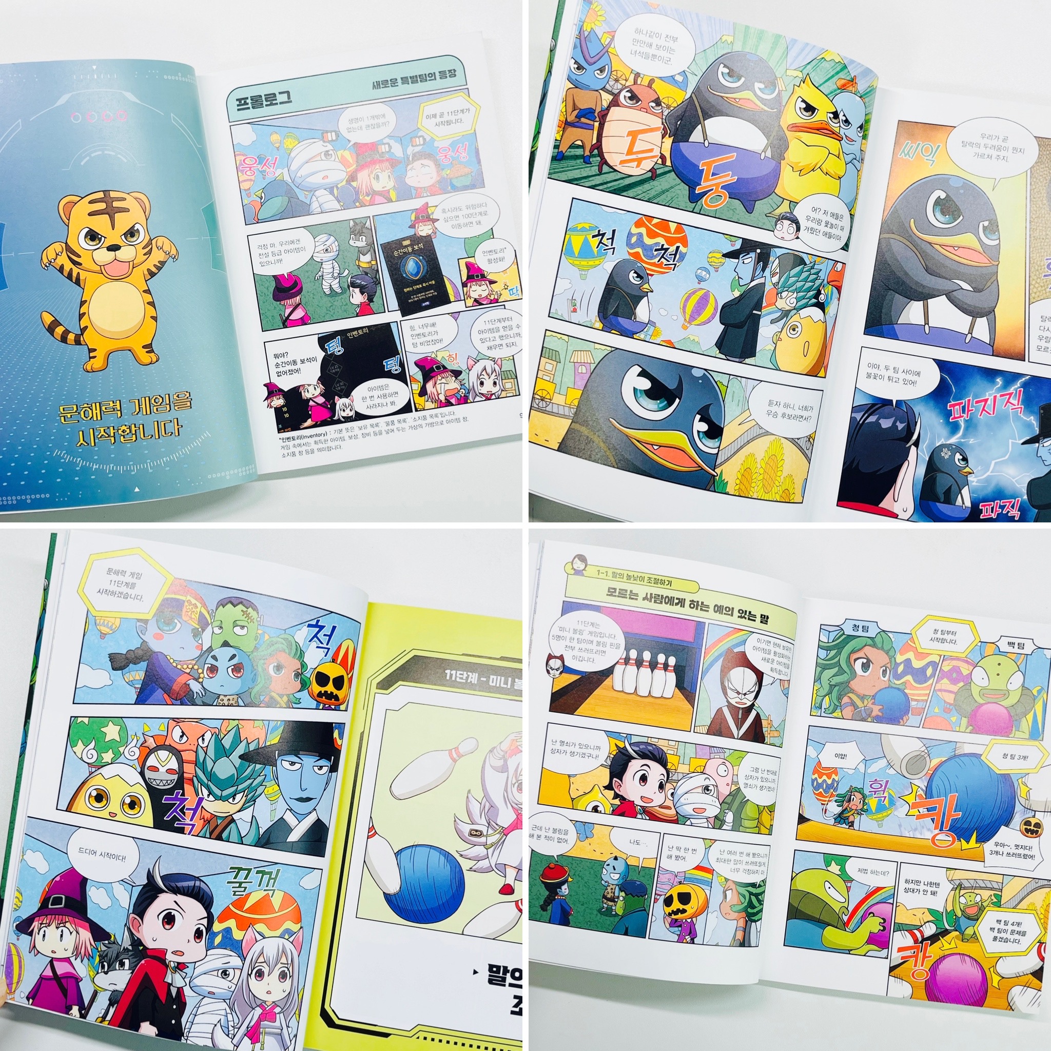 이 책의 가장 큰 특징은 ‘게임형 이야기 구조’였어요. 단순히 만화 읽고 문제 푸는 방식이 아니라, 이야기 자체가 게임처럼 진행되면서 자연스럽게 미션이 등장해요.